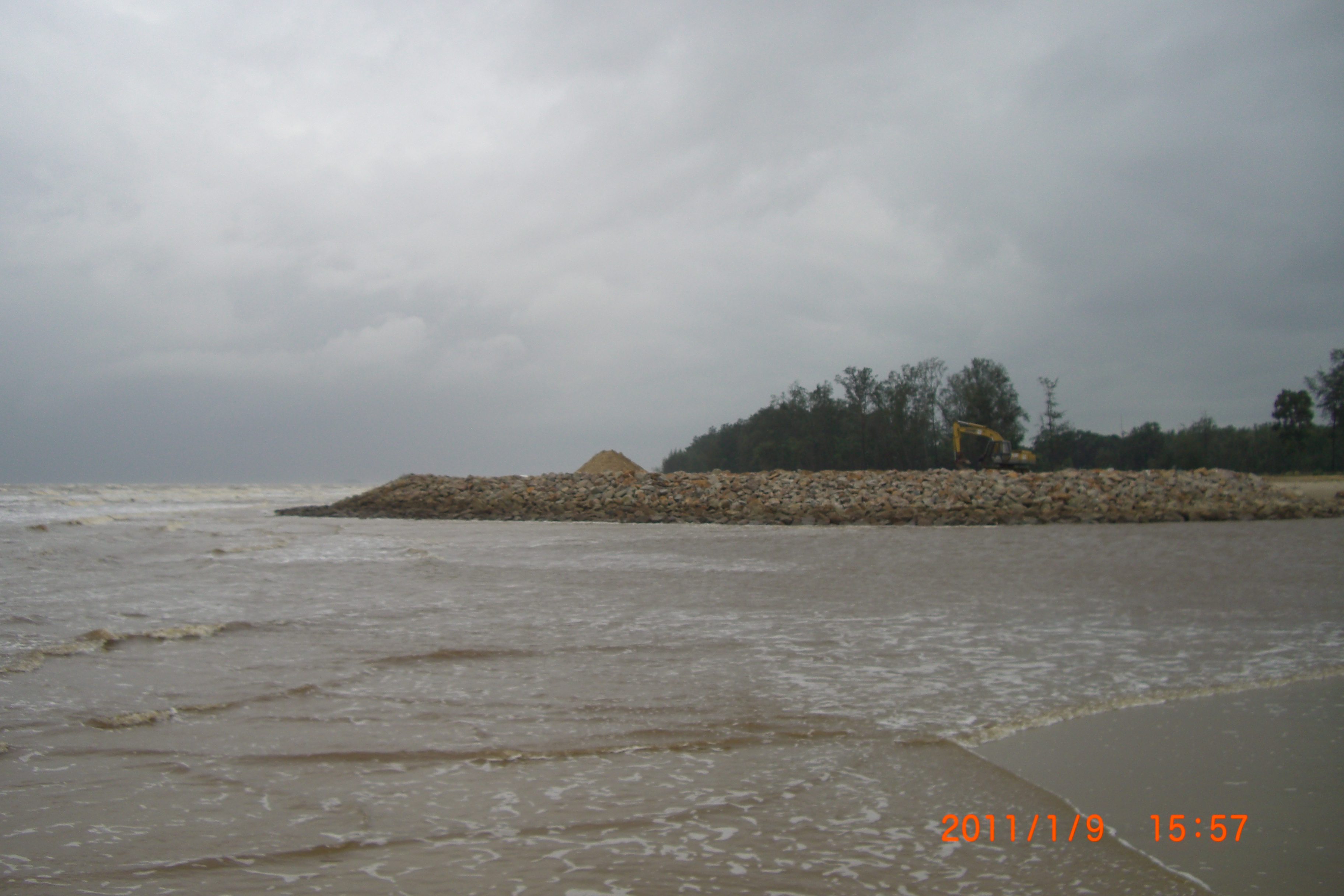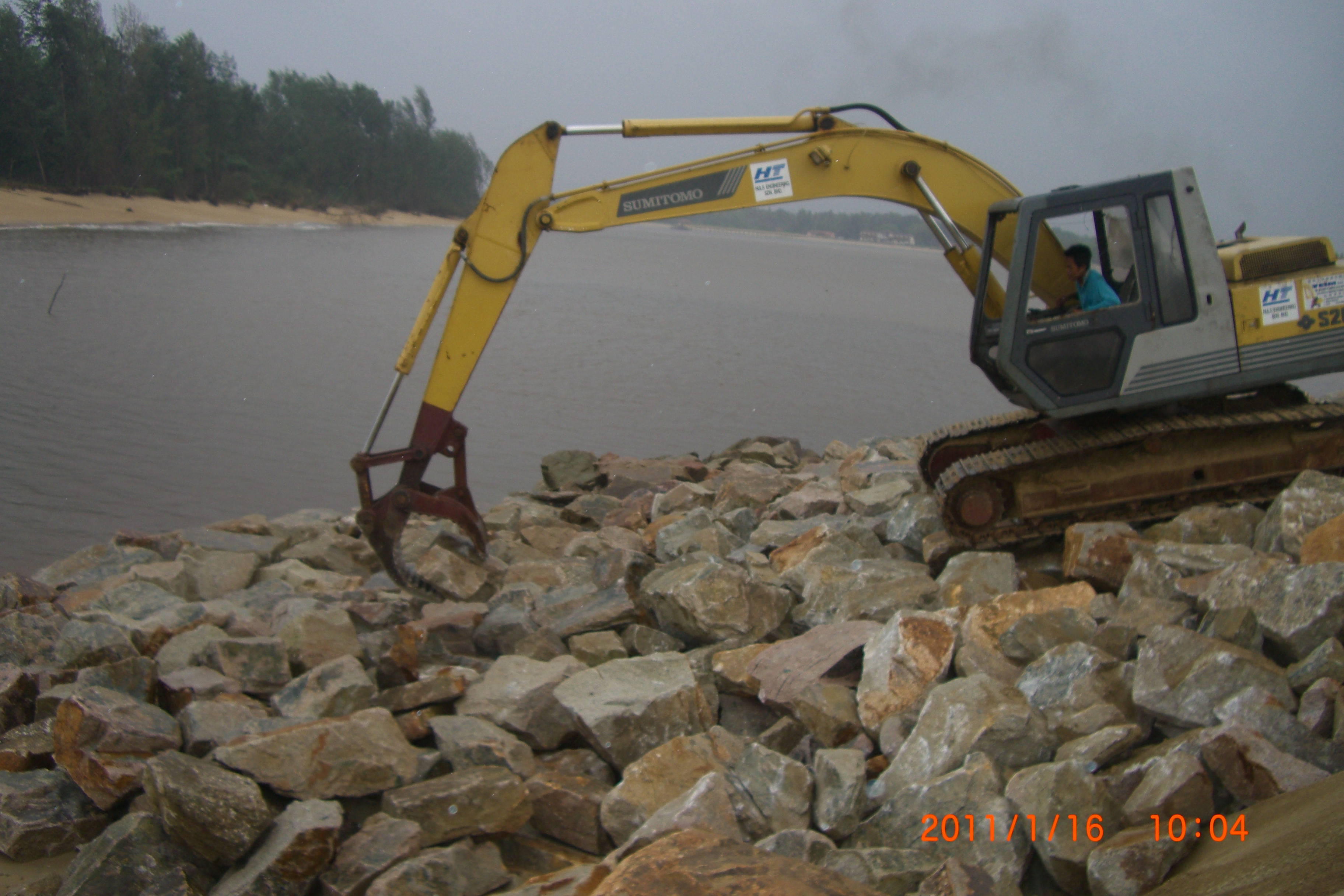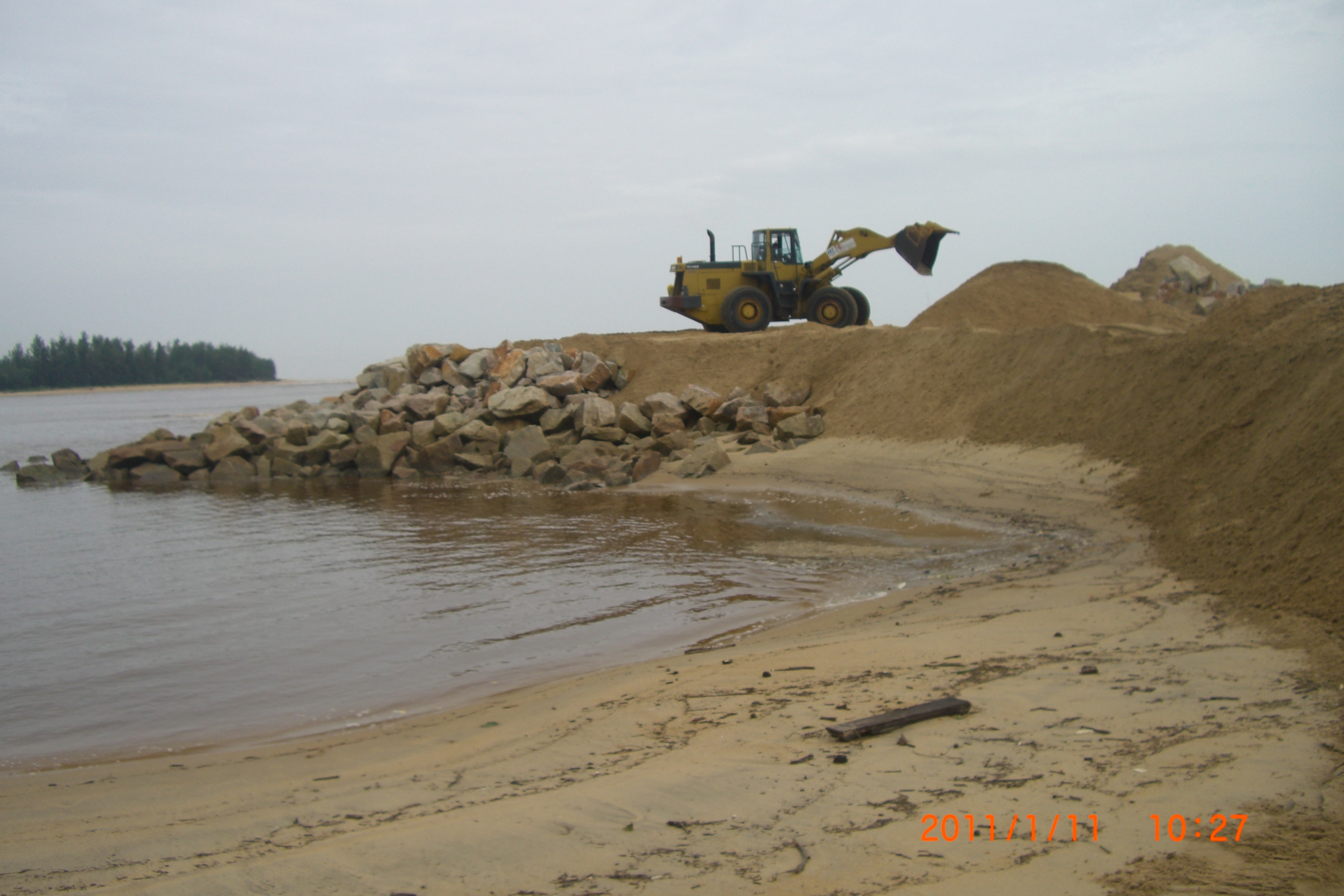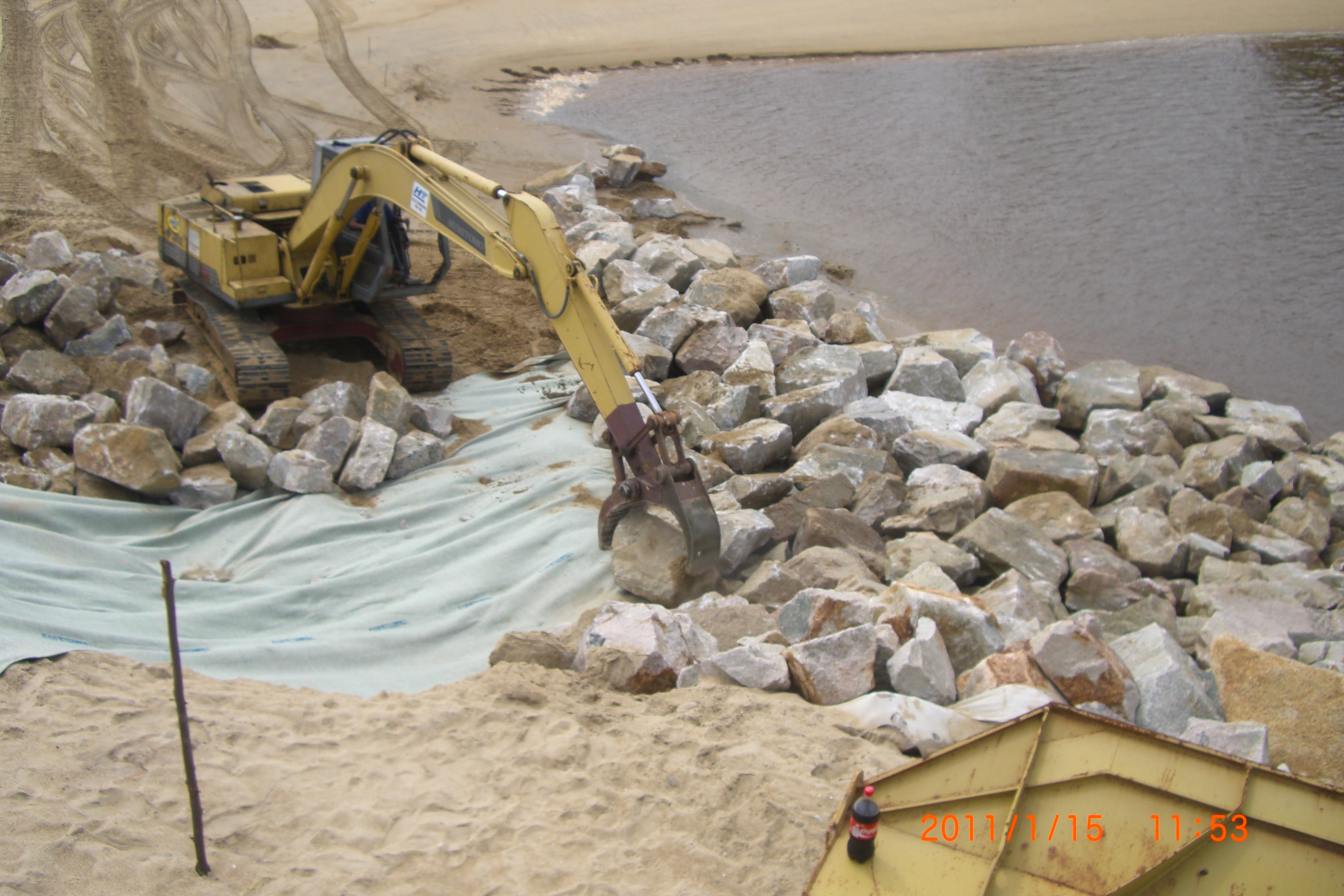The main objective for this poject is to protect gently sloping beach to reduce coastal erosion as per requested by the client after their properties were eroded by the waves. Breakwaters are constructed near the coasts as part of coastal management to prevent from further erosion. For this project, the construction of the breakwaters used various type of non-woven geotextile as the liner.