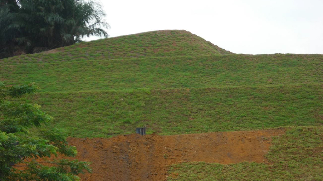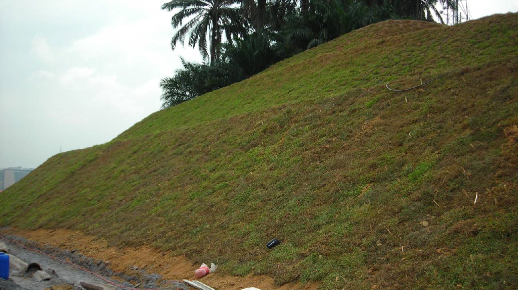 Soil stabilization and erosion control practices are needed and should be used in areas where soil is exposed and natural vegetation has been disturbed or is inadequate. Bare ground should be covered with some form of matting or mulch to reduce initial erosion and promote long-term stabilization with growth from grass seed or other types of vegetation. Huls Engineering as a geosynthetic speacialist was appointed for this matter and proposed erosion control mat.