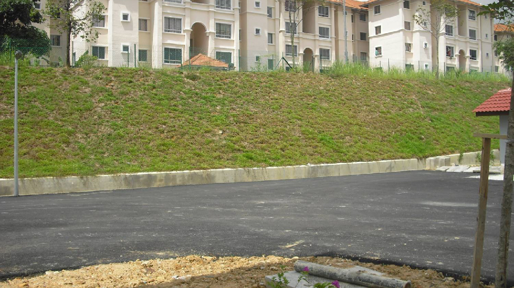 Soil stabilization and erosion control practices are needed and should be used in areas where soil is exposed and natural vegetation has been disturbed or is inadequate. most erosion occurs during the first rainy season after construction. Erosion control measures need to be implemented prior to, during, and immediately following construction and every time an area is disturbed. Bare ground should be covered with some form of matting or mulch to reduce initial erosion and promote long-term stabilization with growth from grass seed or other types of vegetation. Huls Engineering as a geosynthetic speacialist was appointed for this matter and proposed erosion control mat.
